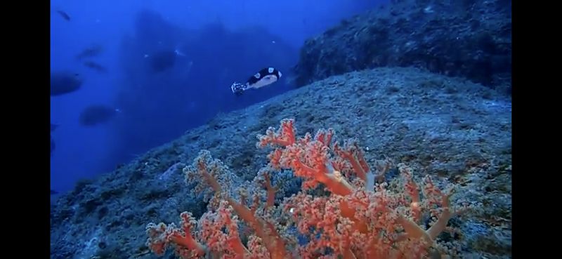 スキューバダイビングについてですが、沖ノ島周辺には格好のダイブポイントが多く散在して おり、